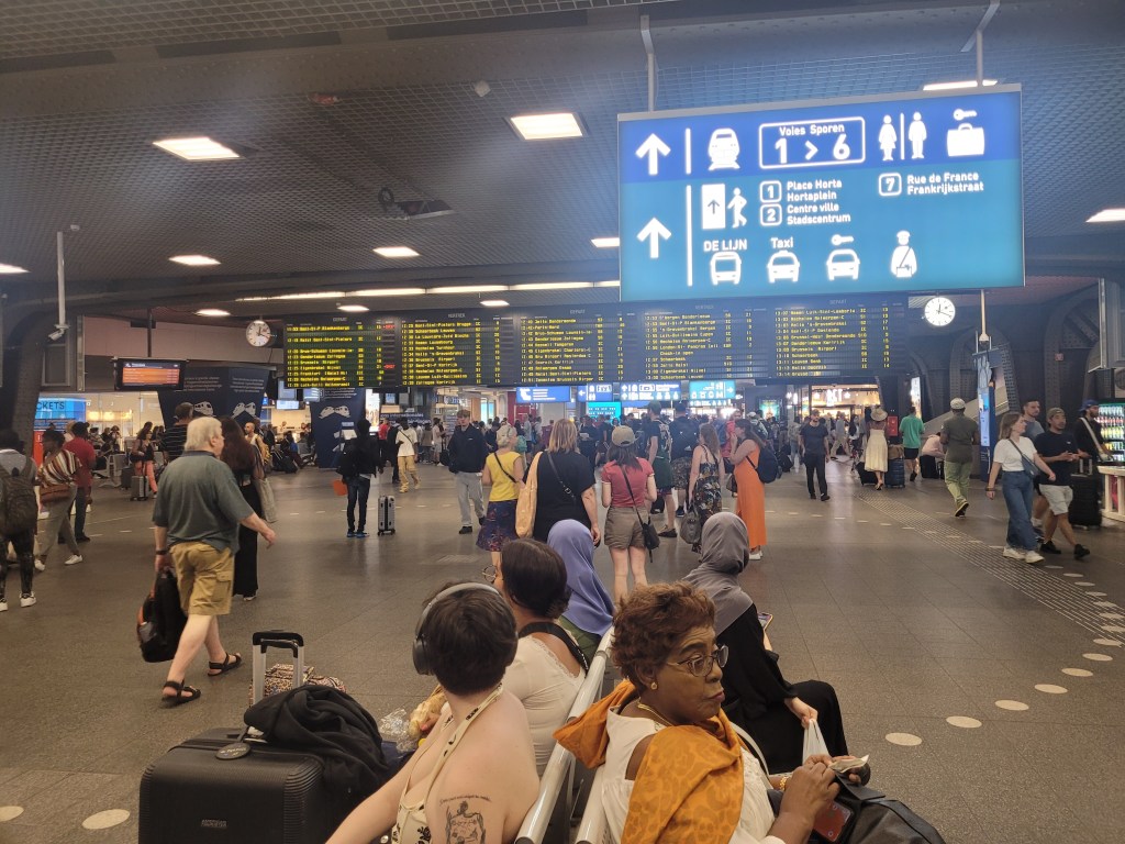 Brussels-Midi was busy, a bit tatty and the monitors showing departures were confusing. Which were the platform numbers? Where were the column headings? Eventually we stumbled across an old-fashioned, analogue airport style departure board