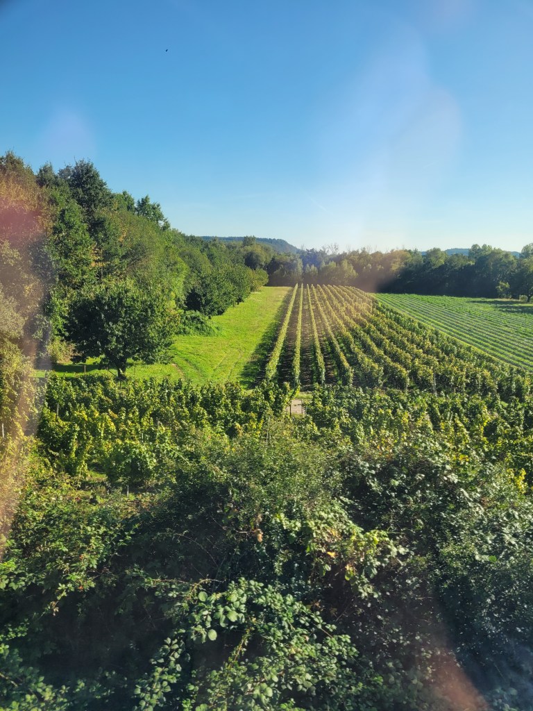 I was unreasonably excited at the sight of a vineyard planted on a steep slope, even though it was right behind an electricity sub-station with lots of spare parts piled at the foot of the slope. Apparently these are typical of the Moselle valley (the vineyards on the slopes, not the industrial debris).