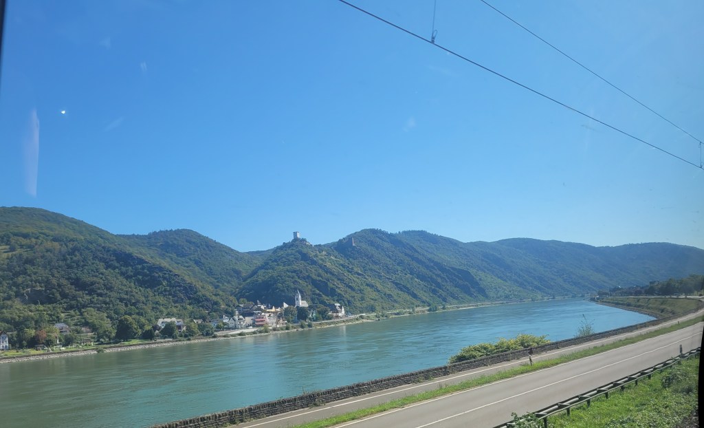 Leaving Koblenz, the Rhine was revealed in all its glory as the track ran right by the river. Rocks, vines, palaces, all so picture perfect and begging for a tasteful, artistically framed photograph. I breathed out, raised my phone, tried to frame a shot and it was gone. Our speed was such that you didn’t just lose if you snoozed, you lost if you blinked, took your eye off the camera, or moved your finger away from the shutter. Or fell over due to the swaying and bouncing as we went over points.