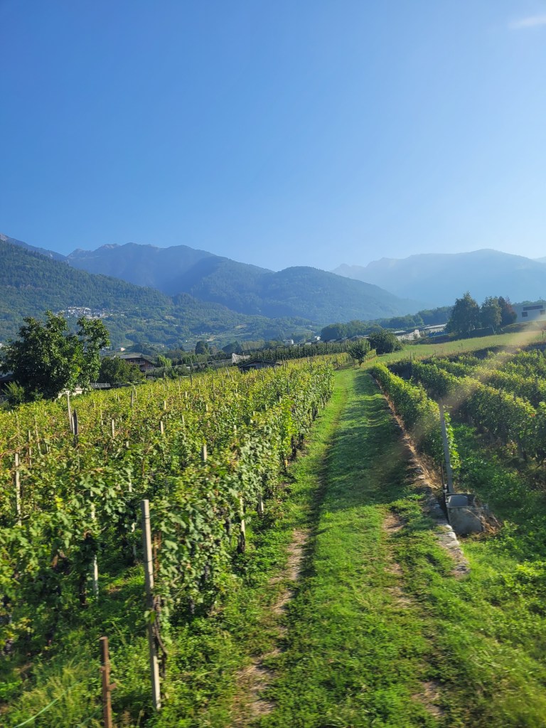 But the train was fast, travelling at nearly 200 kph at one point, and eventually we got more of a view – a flat plain covered with vines. In the distance, dimly, a row of misty mountains outlined the sky.