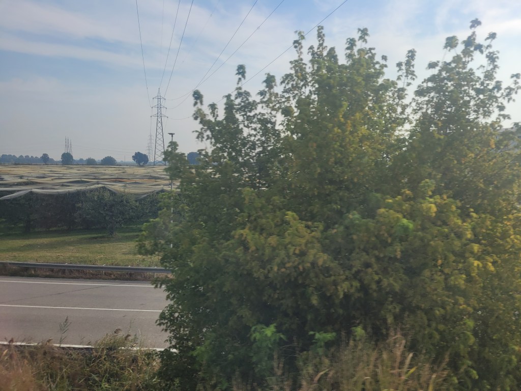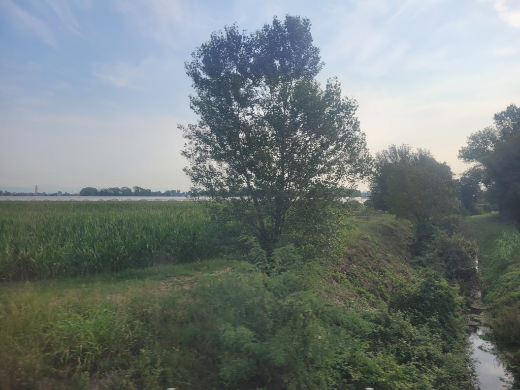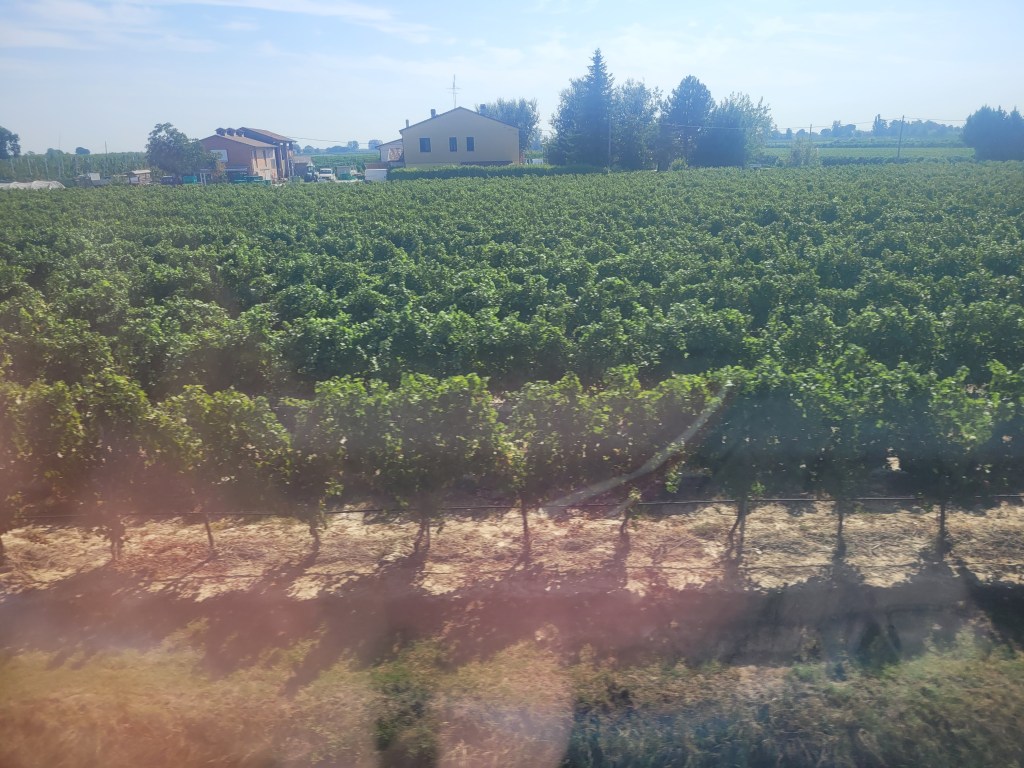 Once out of Bologna (a matter of minutes) and its industrial surround (a bit longer) the train ran through more agricultural land: vines, fruit trees, some maize and mostly empty fields that had already been harvested. Here, however, the fields were significantly smaller. There were also a few hills towards the south so it was slightly less repetitive (and the windows were cleaner).