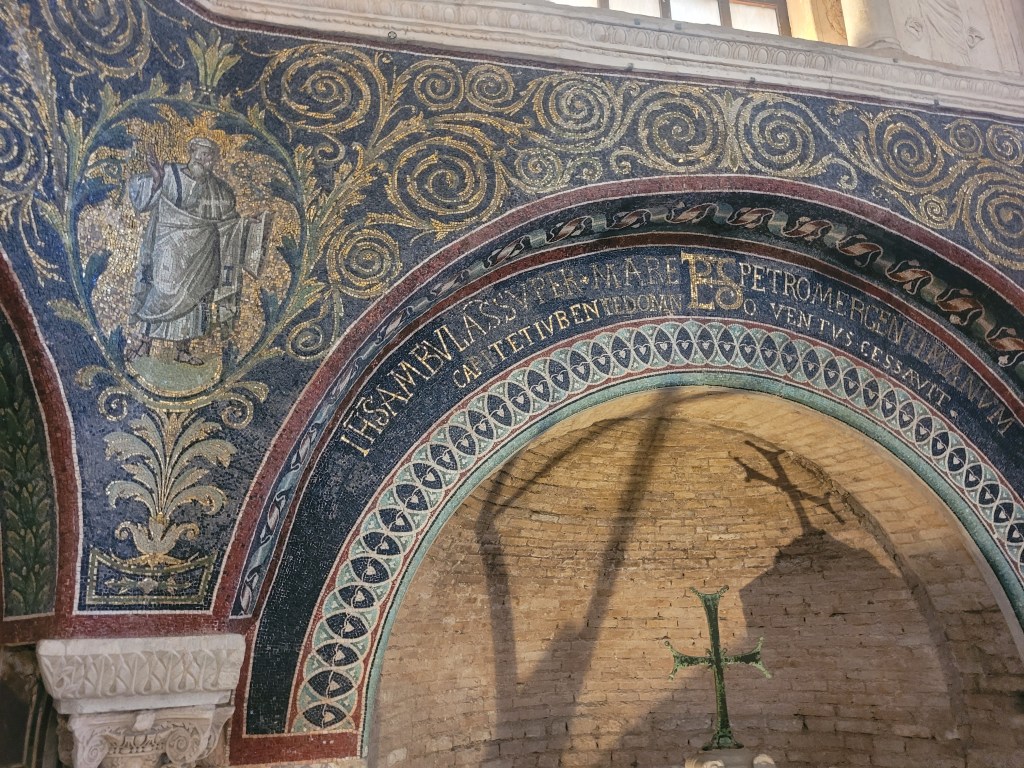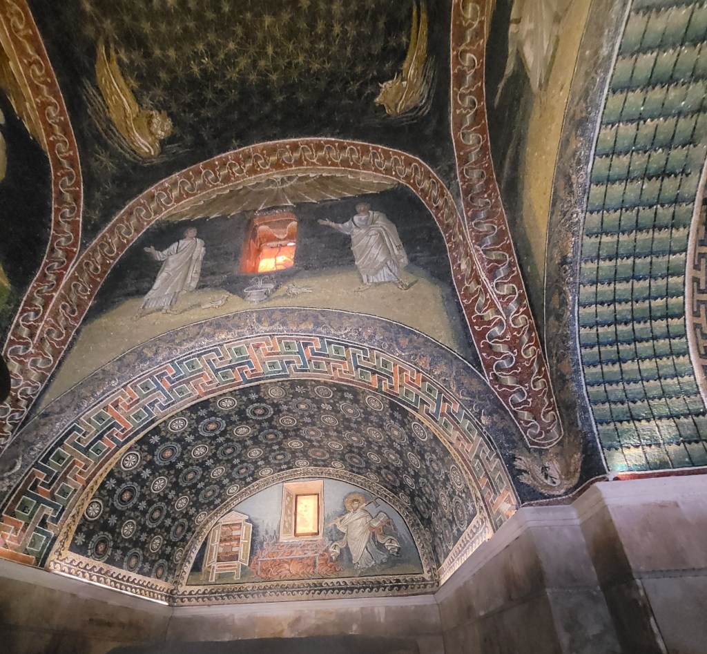 Ravenna has a fascinating, complex and important history. We do have a book (printed, not digital) JUST about Ravenna: it’s a paperback and between two and three inches thick. At some point I will (honest) read the book and then return to Ravenna so that I can make better sense of it all.