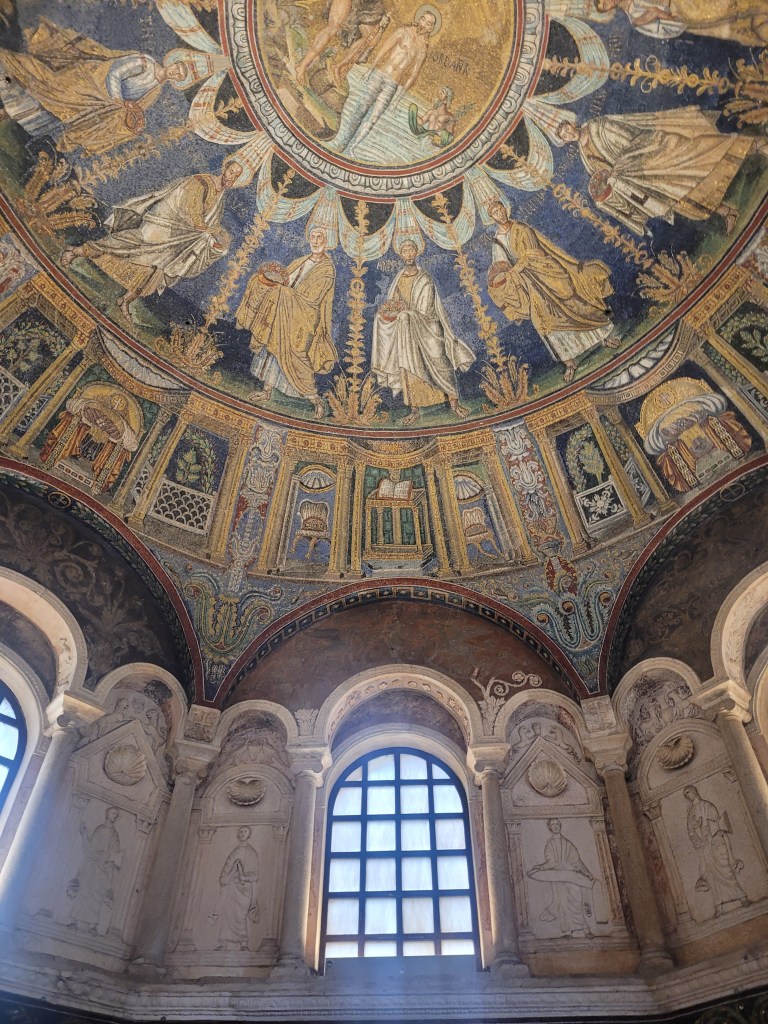 Theodoric’s Baptistry is tiny (even smaller than Galla Placidia’s Mausoleum) but with an amazing (yes, domed) ceiling.