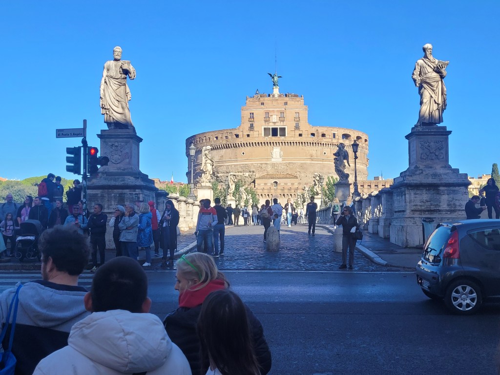 It was a lovely walk, with Castello Sant’Angelo looking its best against the blue sky and next to a gently sparkling Tiber.