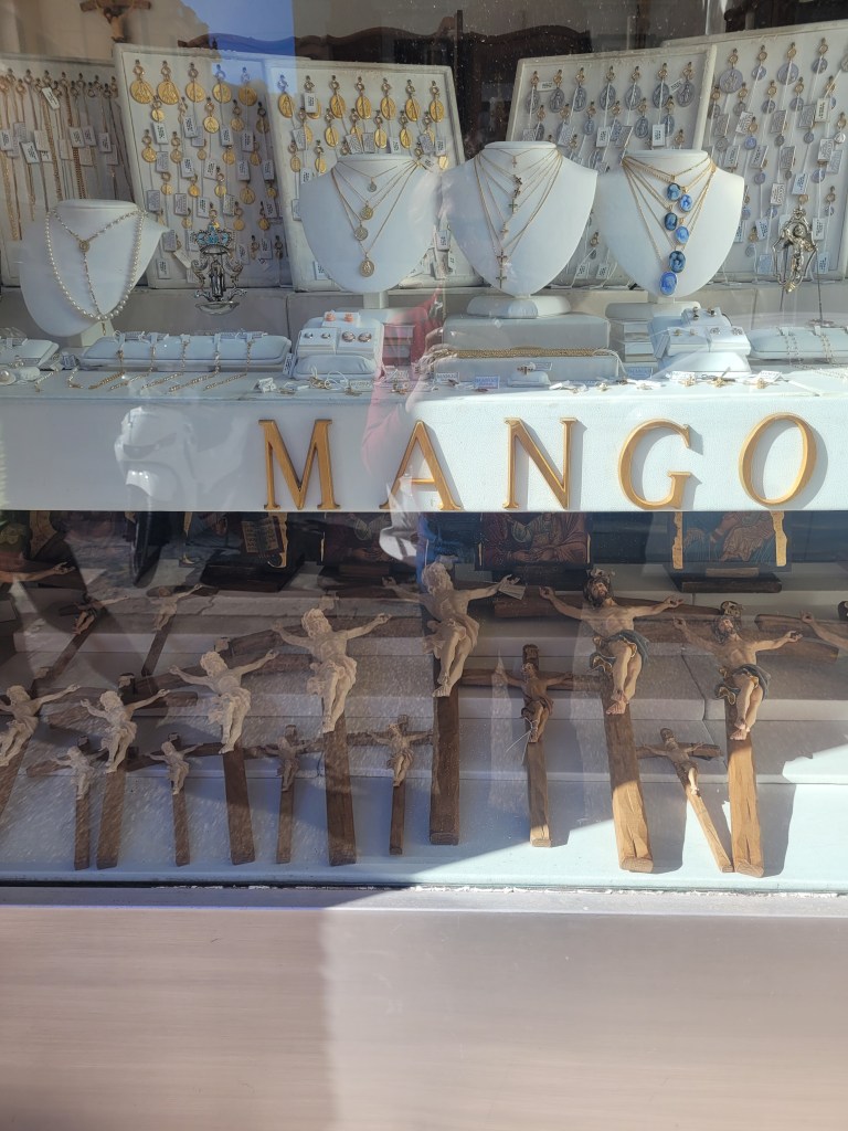 Approaching St Peter’s Square, the streets got more crowded and the shops got more religious – which was to be expected. Mango, however, appears to be branching out into an unusual market for a fast fashion chain!