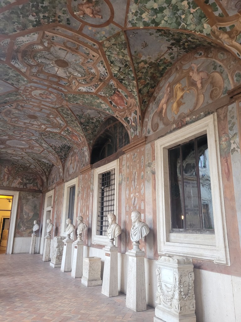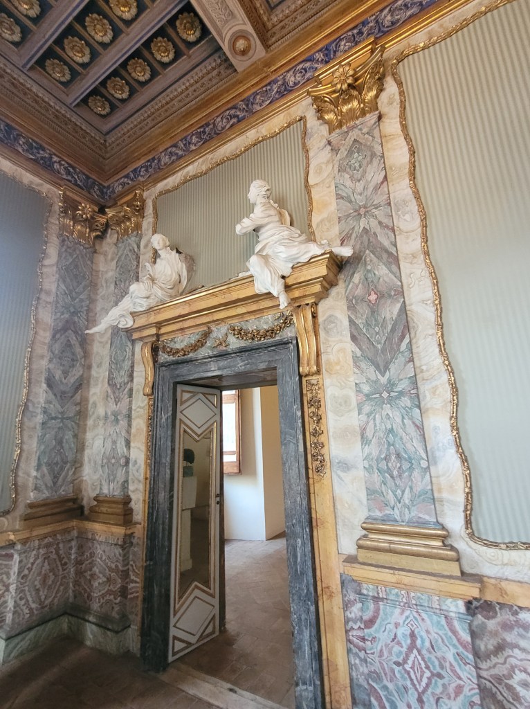Then we wandered into Palazzo Altemps, one of the four museums that comprise the Museum of Rome. It was free because it was the first weekend of the month and while we weren’t that interested in all the classical statuary (we have seen a LOT of classical statuary) the building itself is incredible. Nothing particularly noteworthy from the front, but a lovely central courtyard, with some amazing rooms, lovely ceilings and an ornate chapel.