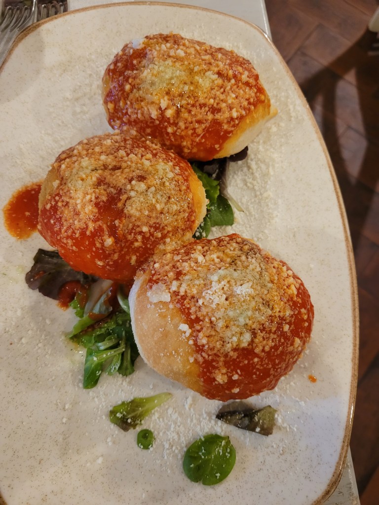The foccacia was warm, the olive oil on the table was fragrant with a hint of pepper