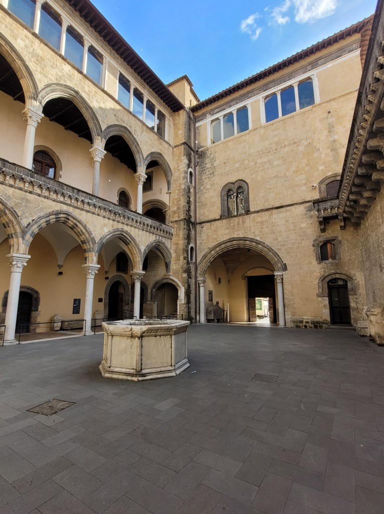 On Thursday we went to Tarquinia, which is an attractive, medieval town that overlooks the sea and has a huge Etruscan necropolis (more of this in the next post). The impressive museum is housed in an old palazzo, with fabulous views – the building was almost as interesting as the collection.