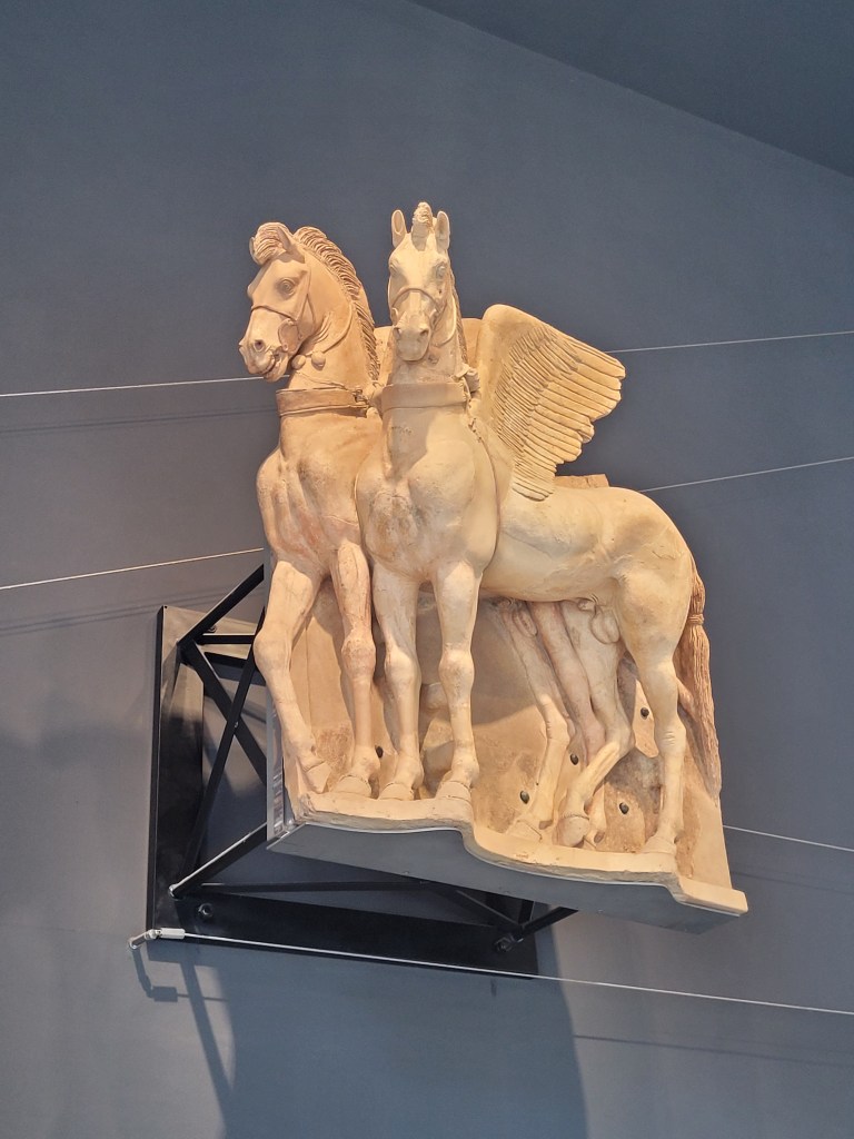 Aside from large number of sarcophogi (I have no idea if this is the correct plural), they have the winged horses statue that is seen as the town symbol. Discovered in 1938, in over 100 pieces, the terracotta statue has been recently renovated. They are truly beautiful and a wondrous example of Etruscan skill.