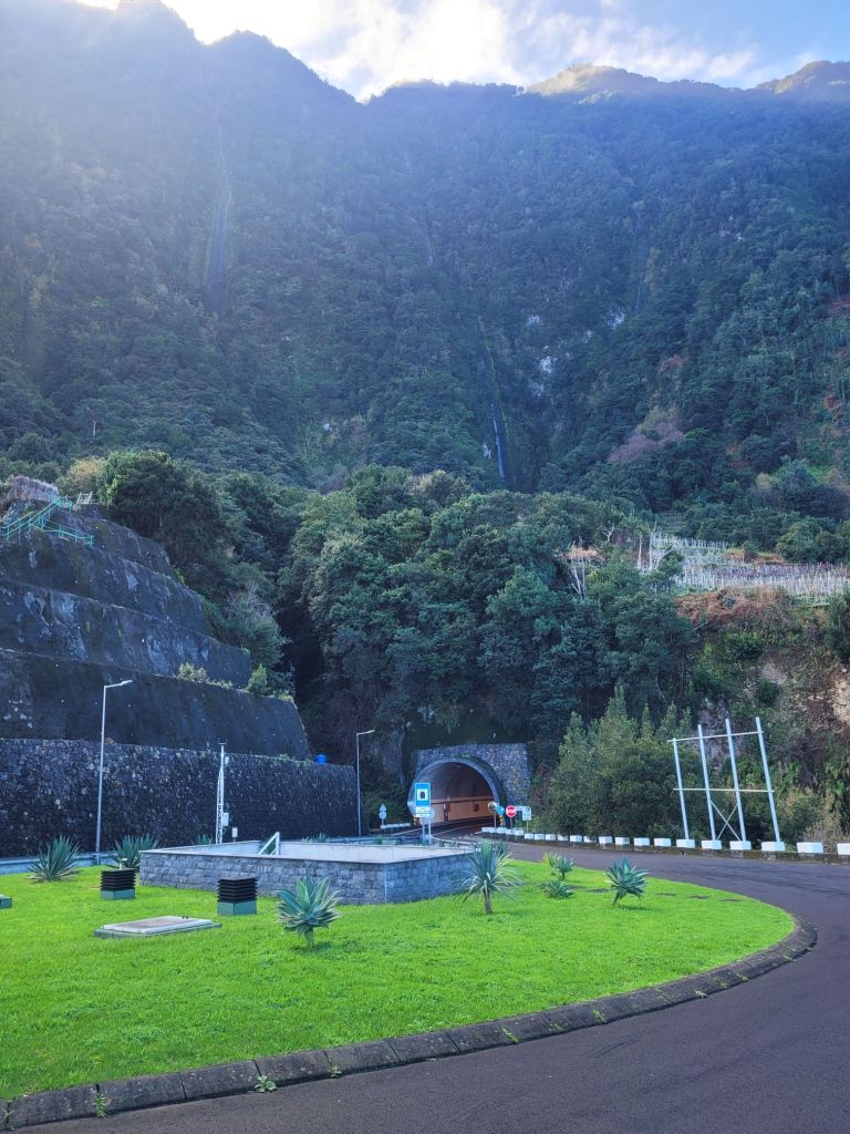 We went through one, very long, tunnel with a downward gradient and a sharp bend; after about 1.5 km it ended in a very small roundabout, with a right hand turn into yet another long tunnel. Sadly, I didn’t get a picture.