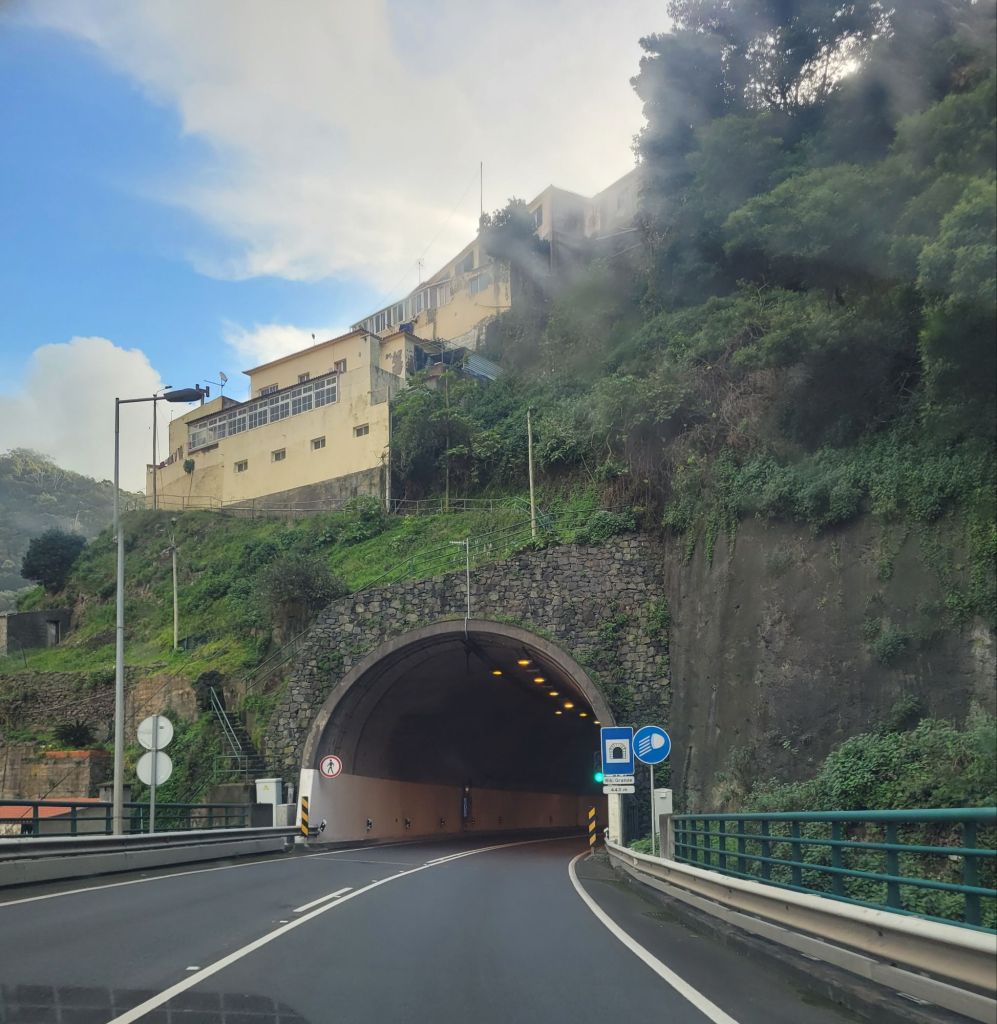 The longest tunnel we drove through is 3.1 km long, and there were many tunnels over 2 km along the north side than there were on the south.