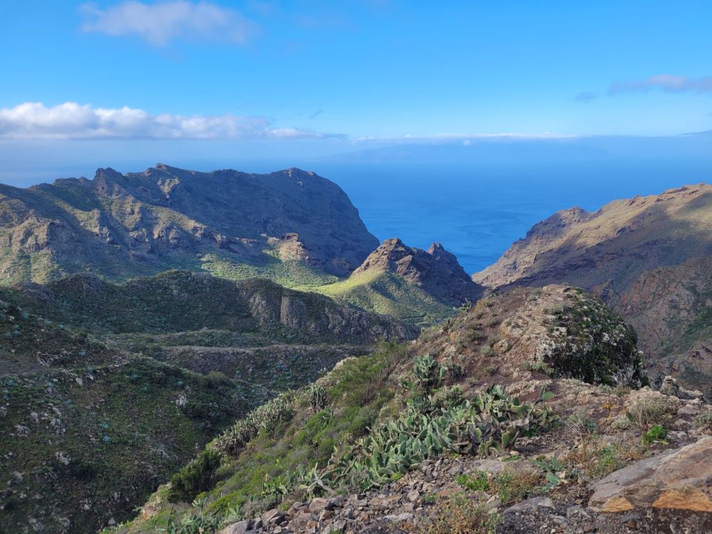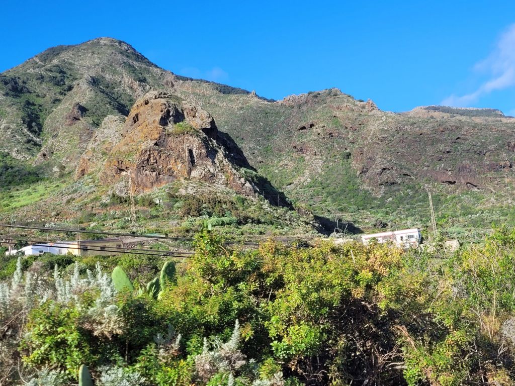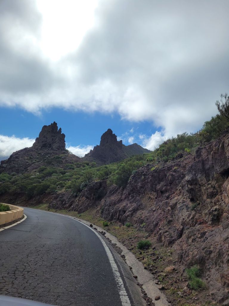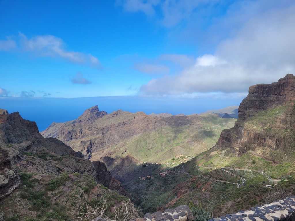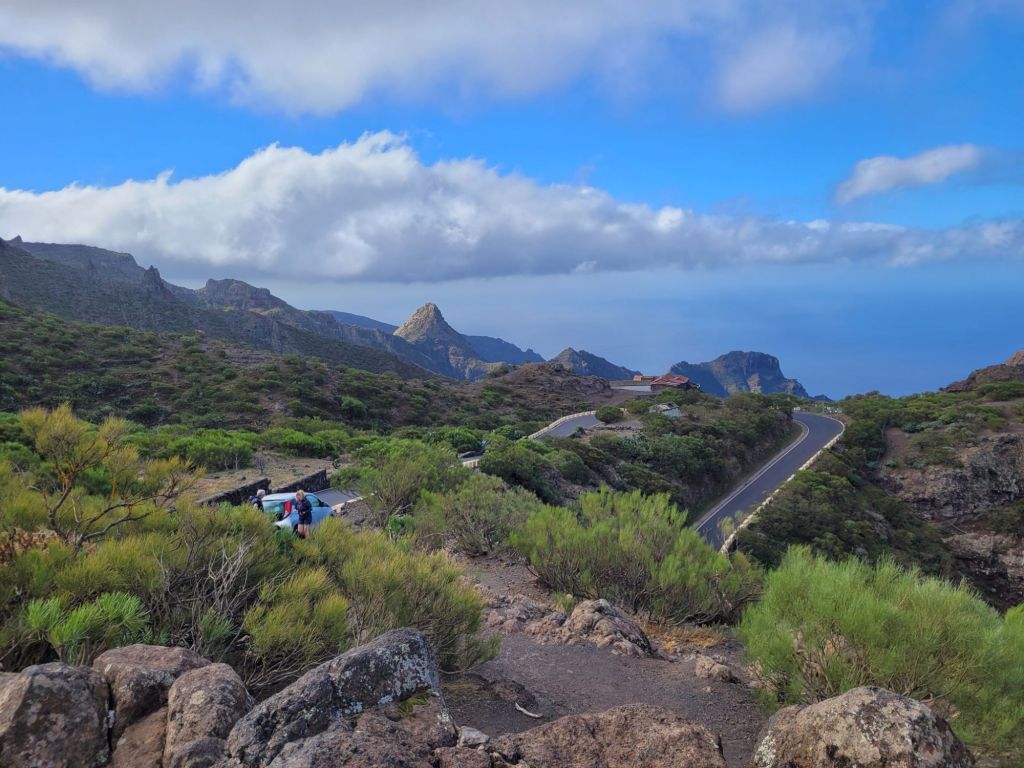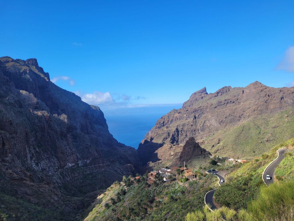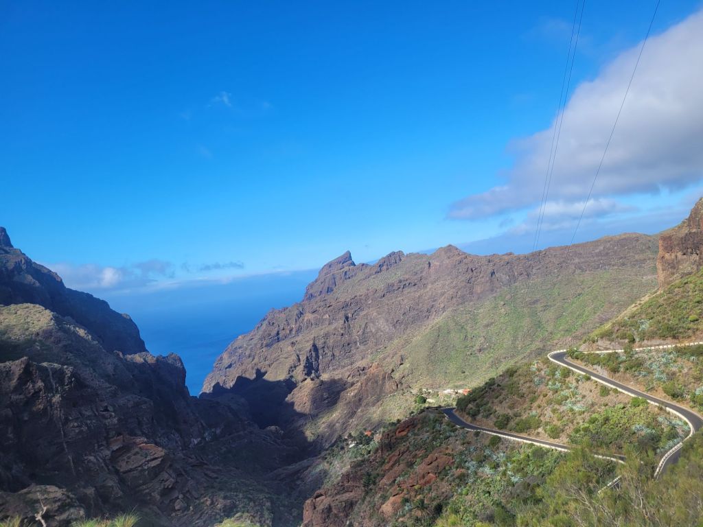 Down, down, down with lots of hairpin beds (tighter than the previous set) and we joined a slow moving queue looking for parking in Masca. Which we couldn’t find.