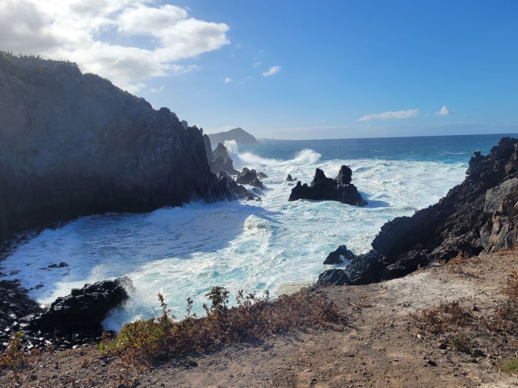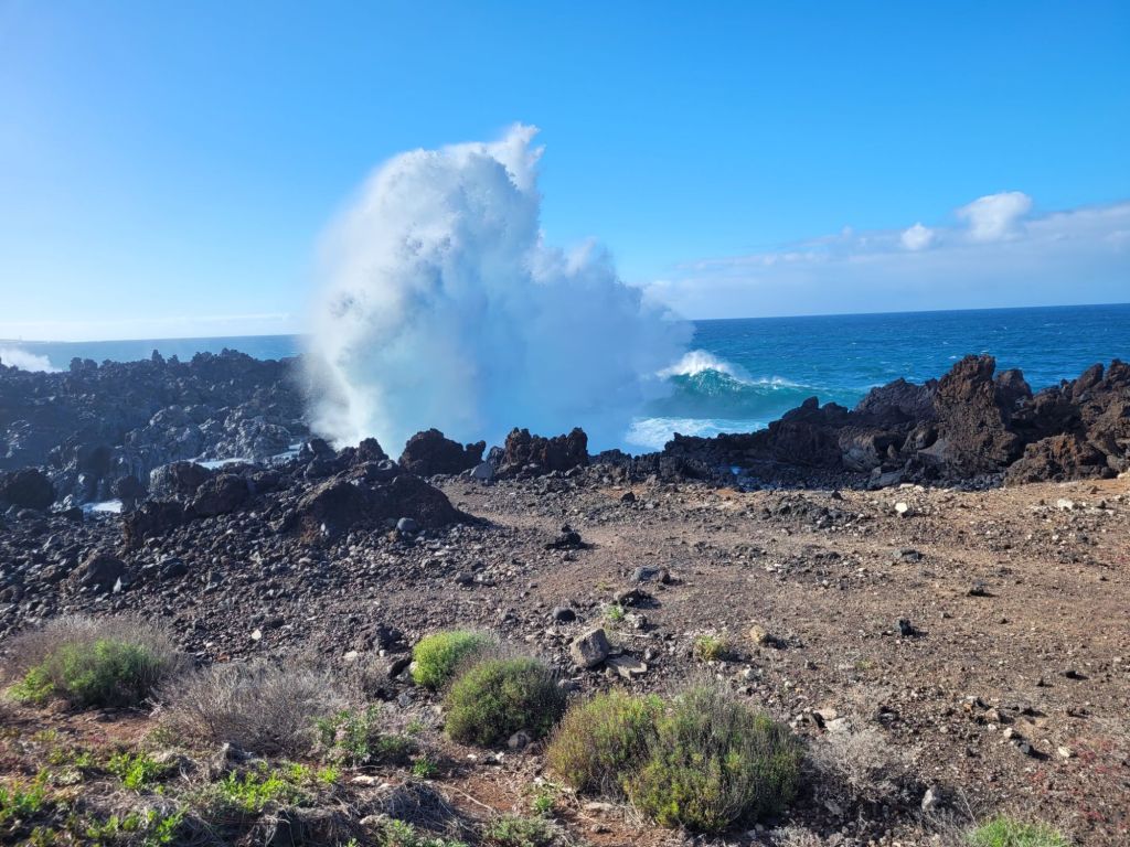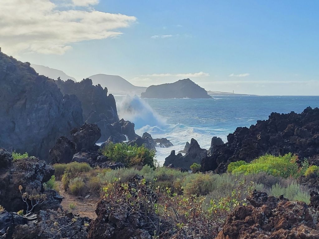The Atlantic meets Tenerife in a mighty rush, particularly when there is any wind to lash up the waves. For 24 hours the wind blew solidly from the north, resulting in some spectacular shows of boiling frothy water and spray.