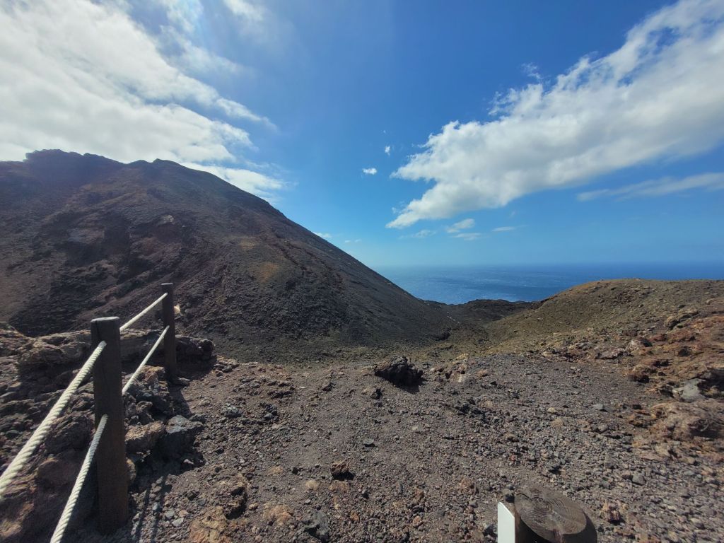 At this point we looked west over the Llanos Negros (black plains) and Los Quemados (the burned ones). This area is covered with ash from the 1677 eruption. As the saying goes, God takes with one hand and gives with the other – this is now the largest producer of Malvasia grapes (used to make Malmsey).