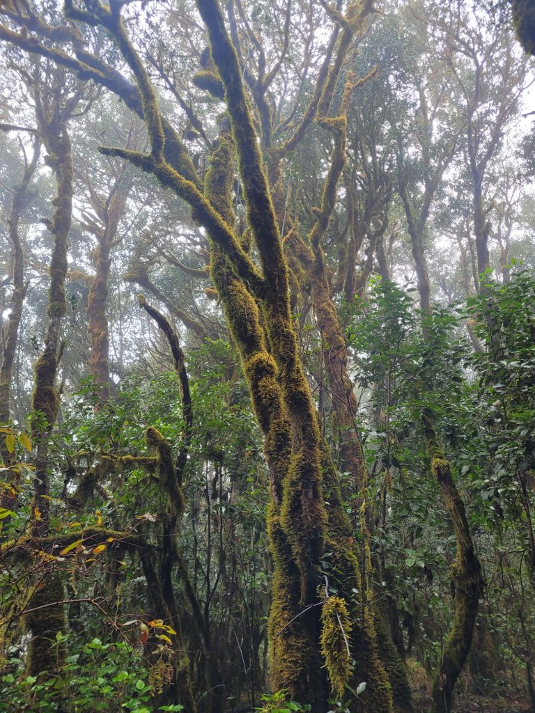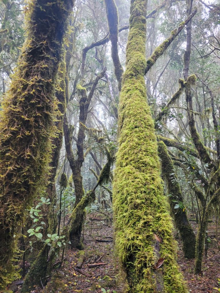 The moss was interesting as the forest seemed to start lower down, but it’s only when you got high enough that moss took over the trees as they twisted and reached for the sun.