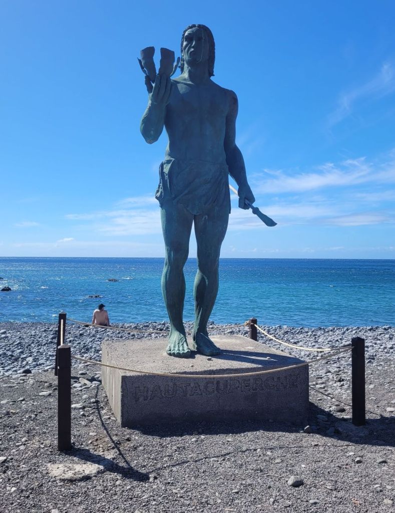 Acknowledgement of the Guanches peoples who inhabited the island before European invasion is patchy and sometimes contradictory. On La Palma, the visitor centre in El Taburiente commented on the ‘ignoble’ behaviour of Conquistadores who tricked the Guanches into submission – through slaughter and violence into slavery and death. However, also on La Palma, the Naval museum exhibit notes remarked on the ‘peaceful and tranquil’ subjugation of the natives. On La Gomera, a statue to the leader of the Guanches’ (futile) resistance against the Spanish stands on one of the more popular beaches, back to the west, facing inland – most of the Guanches on La Gomera were slaughtered.