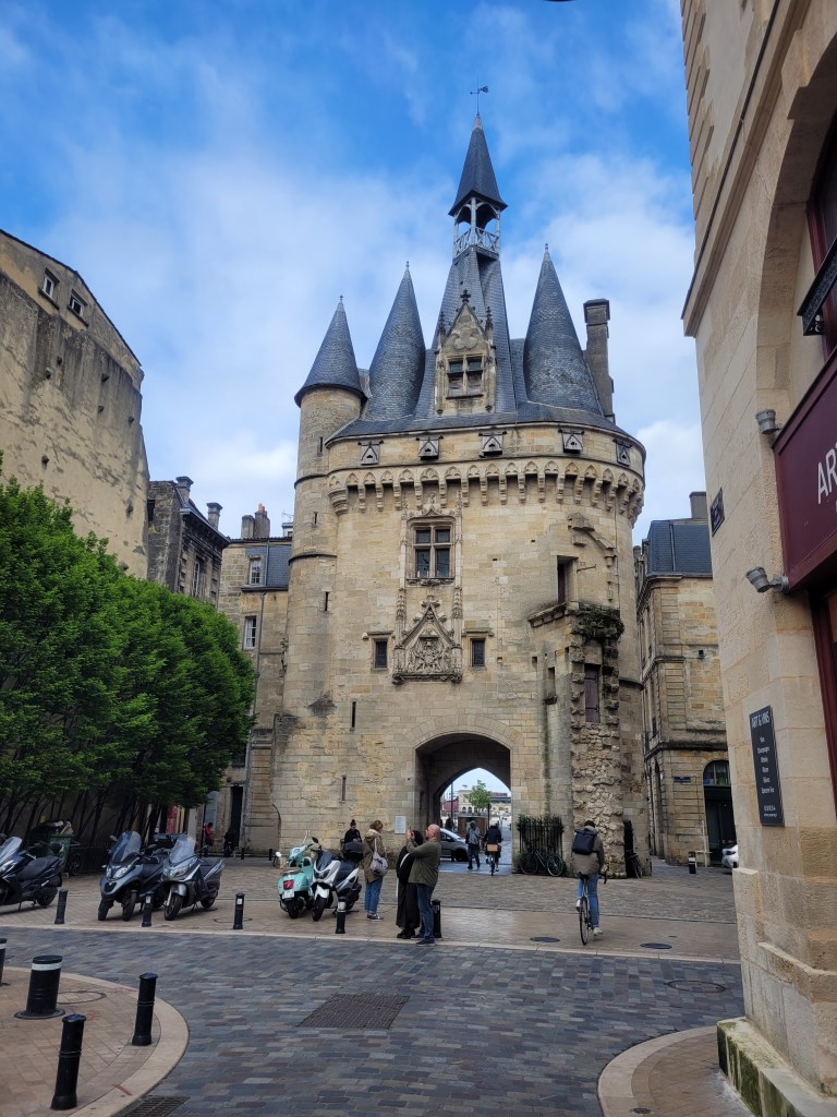 Our only other (very mild) complaint would be bicycle peril. Bordeaux is flat, perfect for cycling, and there are a lot of bicycles – single cyclists, tourist cylists, those in full lycra cycle clothing shifting along quickly, business people wearing ofice attire, delivery bicycles with trailers, mothers cycling with children in front of them, mothers cycling with children behind them and someone on a skateboard being towed, cycles towing refuse collection boxes… just lots of them. There are also monocycles, e-scooters, scooters, those on roller skates or blades. They all zip along at speed, with little to no segregation between pedestrians and two-wheeled traffic. After a few close calls (and some interesting French imprecations which I didn’t quite understand), we felt we needed wing mirrors on either side just to walk along the road.