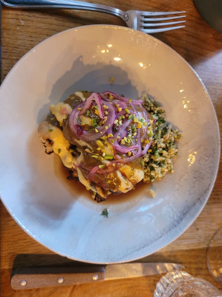 Supper on Tuesday was at Echo – a small place run by a young team who have some interesting ideas about flavour combinations. All their wines are organic (an interesting choice in such an iconic wine city) and their menu is quite restricted: three starters, three mains and two puddings. Strict vegetarians would be limited as there was only one option between all offerings that didn’t have some meat component, however small.