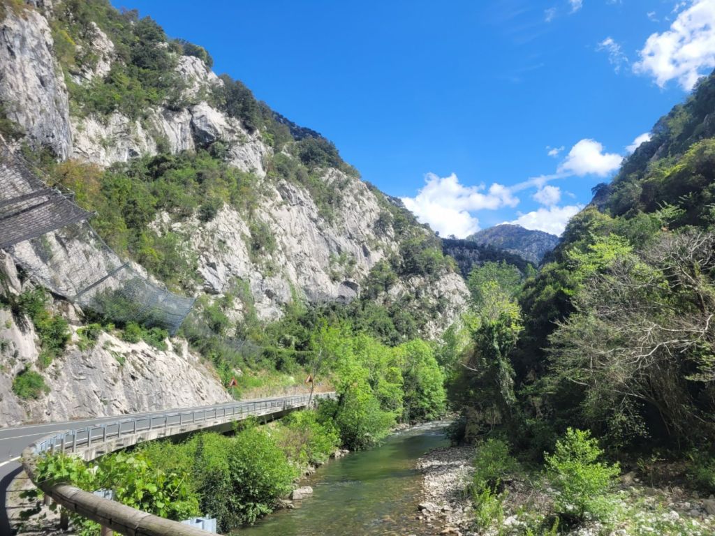 The Deva forms part of the border between Asturias and Cantabria, and it’s the Deva we followed as we turned inland (and southward), heading toward the Picos de Europa. Fairly quickly, big lumps of rock start to take over the view.