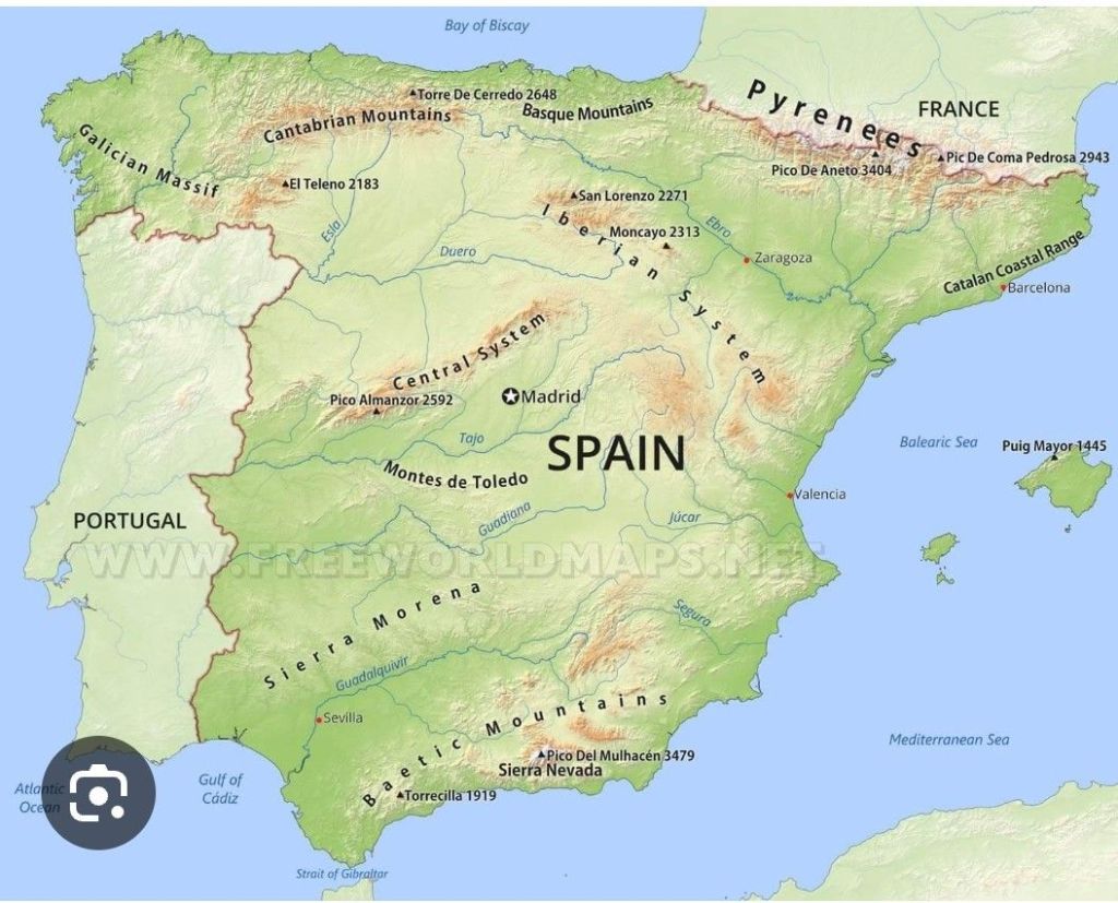 Glaciation and water erosion formed the gap between the two ranges, and the southerly, higher, rank of mountains casts a significant rain shadow for the central plain. Thus the Atlantic ‘fringe’ area is temperate, wet and lush (hence ‘Green Spain’) while the central plain is arid and more extreme in its temperatures. Rivers in Cantabria either plunge quickly towards the Atlantic coast, or move in a more leisurely fashion towards the Mediterranean or Portugal, depending on which side of the water-shed they rise from. The Ebro, for example, is Spain’s longest river; it rises in Cantabria but emerges in the Mediterranean half-way between Barcelona and Valencia.
