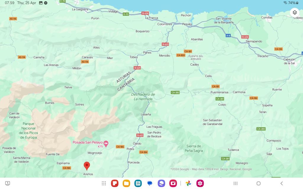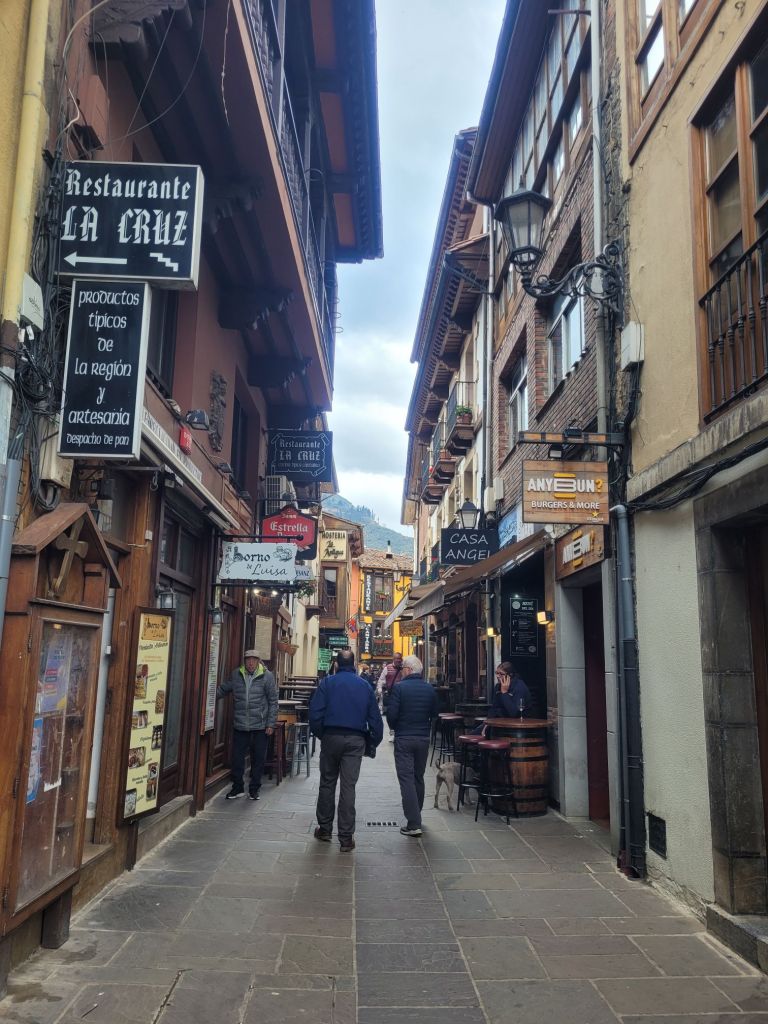 It’s a very pretty town and has an all-year population that needs things like strimmers, tools, sewing supplies… It also caters to tourists: both visitors to the Picos but also those who are walking the recently reinvigorated Ruta Lebaniego, about 72 kilometers from the coast to a monastery in Santo Toribio de Liebana. A pilgimage route in its own right, it also joins the Northern Camino de Santiago (which runs along the coast) and the, more standard, Camino Frances (the more southerly route).