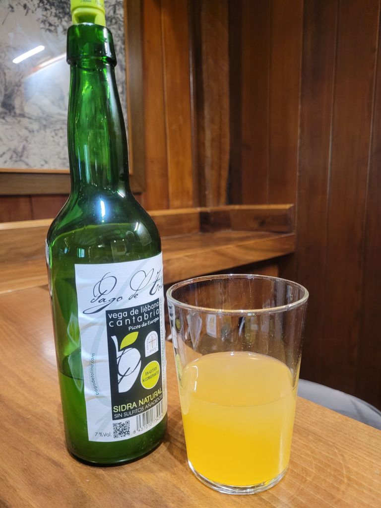 Cider is a thing across northern Spain, so we decided to sample it. The yellow plastic cork is an ingenious device which, after being pulled from the bottle, is reinserted upside down in order to aerate the cider as you pour it out (with much splashing and dripping, despite not having my hand up in the air). Possibly an acquired taste.