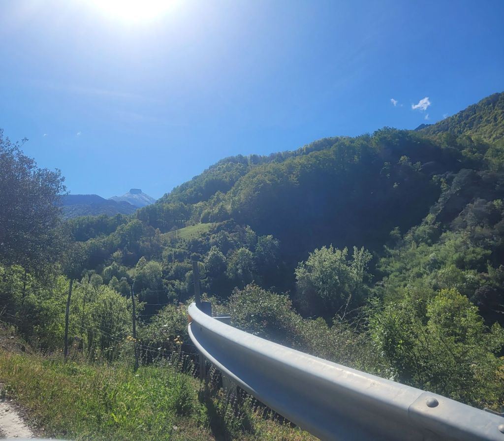 After all the lush green, rounding a particularly sharp corner brought a surprising rocky outcrop in the distance: the road inexorably climbed towards it.