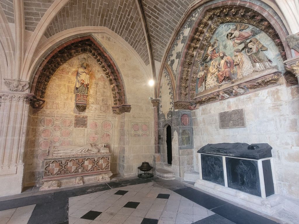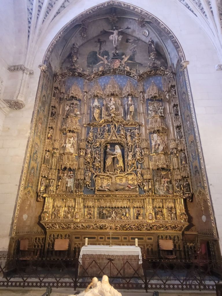 In the upper cloister there were remnants of painted stonework, hinting at the riot of colour that worshippers (or just visitors?) might have seen when the cathedral was ‘new’. Started in the 13 century and completed in the 16th century Burgos cathedral is considered a comprehensive example of the development of the Gothic ‘style’. Painted stone was typical of the medieval period – so maybe only the earlier sections were painted because the Gothic style has more light so specific artwork can be appreciated more? I could find no answer to this question that linked specifically to this cathedral.