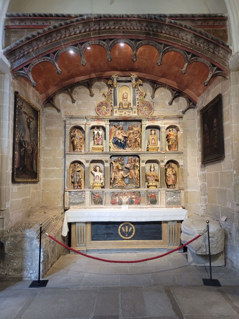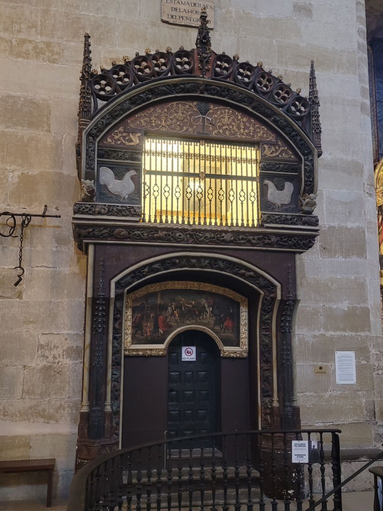 There were, however, two things we really liked about this cathedral. The chickens (obviously) and the way they dealt with the remaining Romanesque chapel of St Peter, dating from the late 12th century. It had been blocked by the main altarpiece in the 16th century. On initial viewing the later piece seems traditionally blingy, but closer inspection reveals grotesques and mythological creatures unkown in other altarpieces throughout Spain. But it is certainly blingy and its removal in 1994 to a side chapel allows the oldest part of the church to be appreciated.