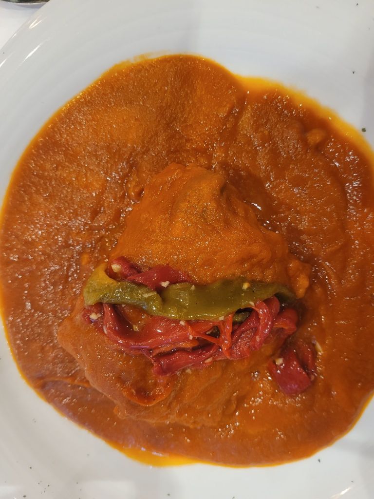 Roger’s stand-out dish was had at Los Caballeros in Santo Domingo de la Calzada. Bacalao (salted, dried cod) is a typical ingredient in Spain. When I have had it, I have not enjoyed the texture at all. Roger had the bacalao ‘a la Riojana’: he found it difficult to believe that it was salted and really thought it was fresh – he asked, it was salted. Apparently it’s all in how it’s reconstituted. He found it delicious: the sauce had just enough pimenton to give it a very gentle kick.