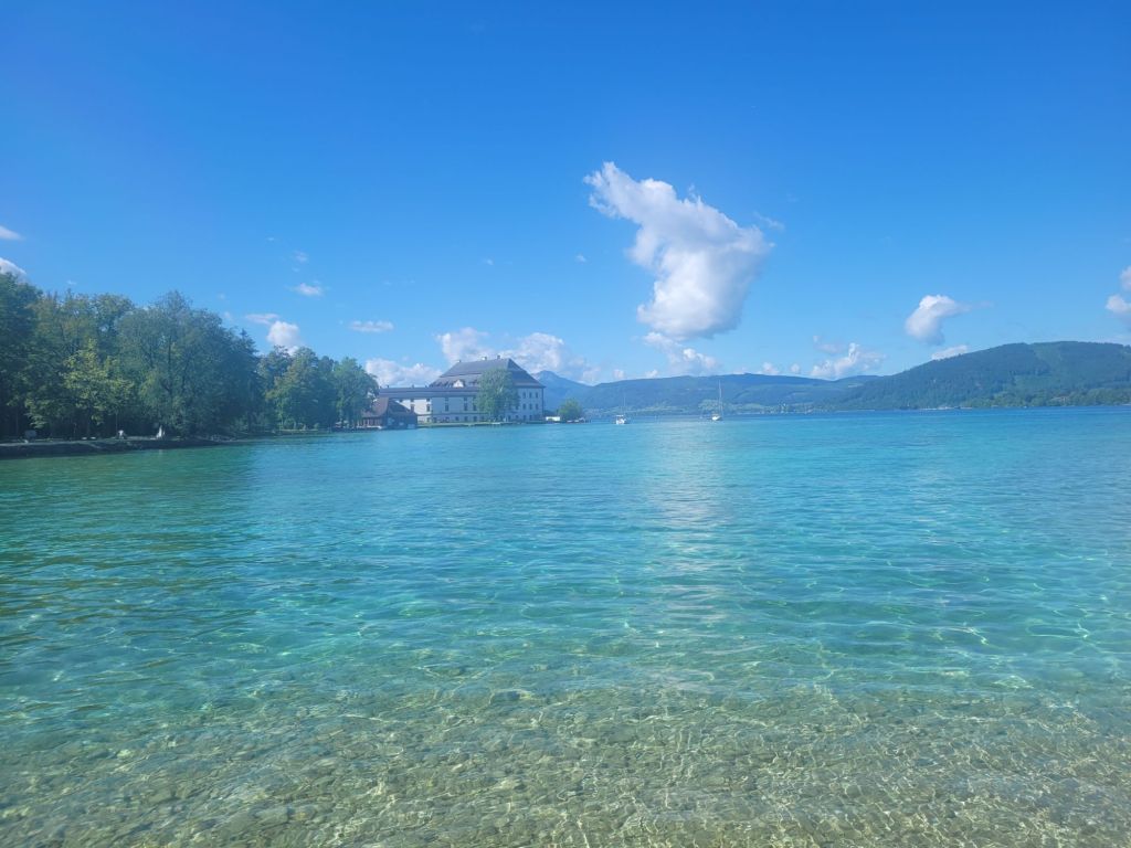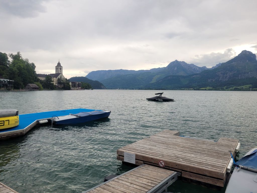 And let’s not forget the cultural aspects. The largest lake, the Attersee, was a favourite spot for Gustav Klimt; he spent summers between 1900 and 1916 on the lake (as did many others) to escape city heat. In fact, one of his paintings is called ‘On Lake Attersee’. Apparently the lake takes on a particular hue in the heat of summer, and Klimt became fascinated by trying to reproduce it in his pictures. I didn’t quite believe the whole colour thing – it looked dark blue to me – and then the sun came out.