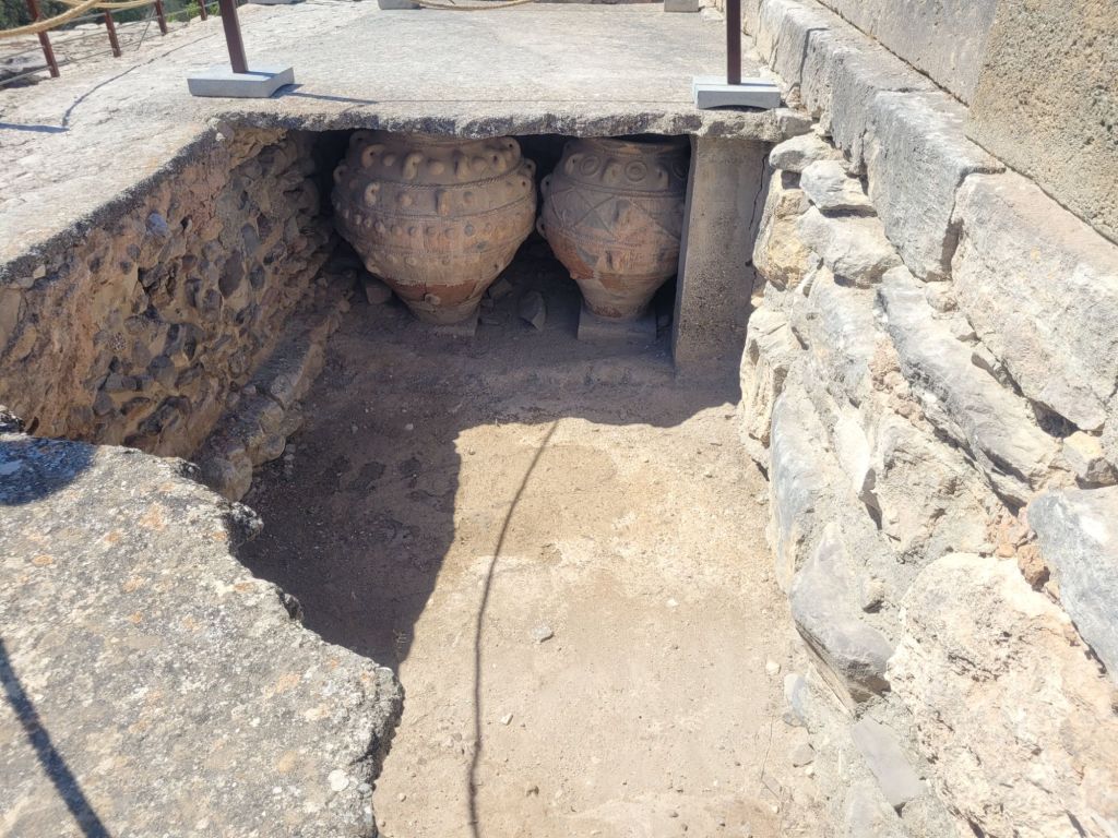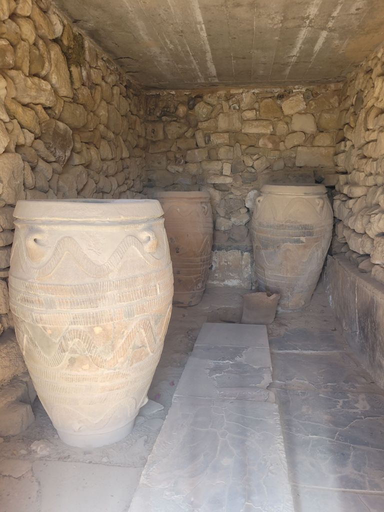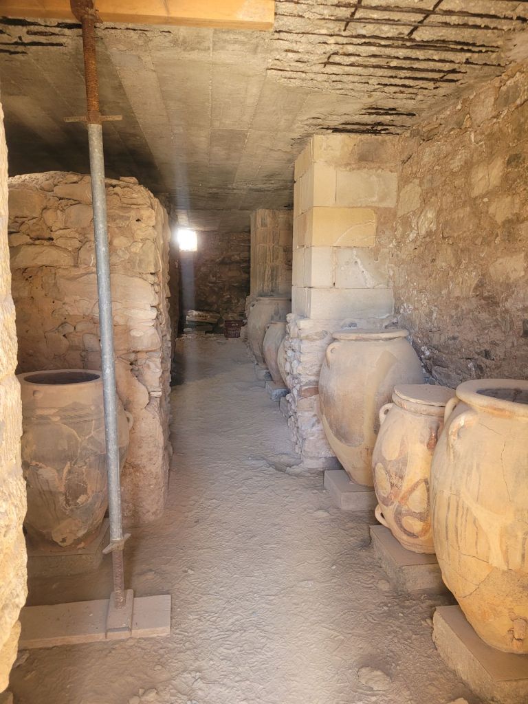 There are rows and rows of storage rooms (with jars still in them), the standard large central court around which there were various wings, a jumble of buildings elsewhere …