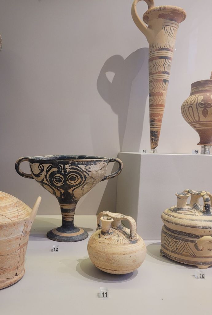 The most beautiful pottery we saw was in the Messara museum (near the south coast), which has a strict ‘no photography’ policy – in contrast to the small (but very nicely laid out) museum in Rethymnon, where the person taking our money urged us to ‘take lots of photographs’.