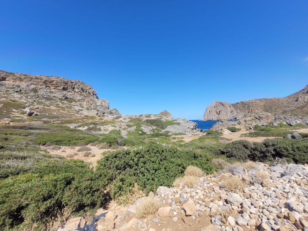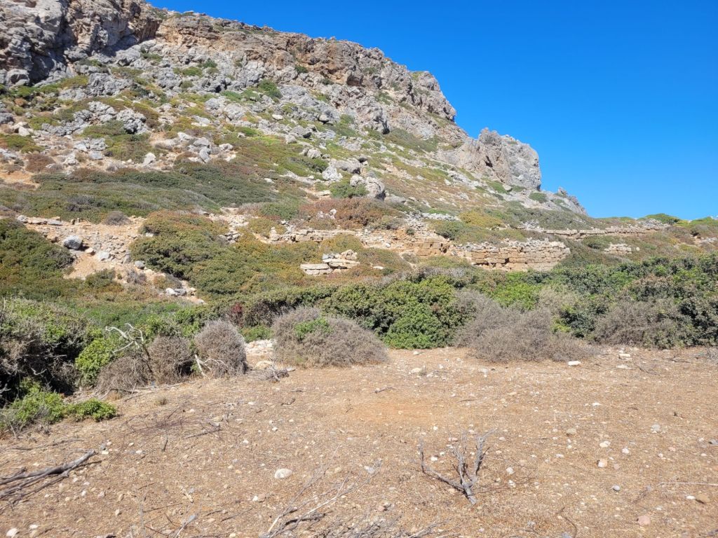 The very first site we visited was Falassarna (also spelled with a ‘Ph’, you find both on the same website, in the same document and on different road signs), in the northwest, just beyond the long sandy beach the modern town is known for. It’s also known for the number of polytunnels (melons, I think), which you drive through in order to get to said coast, and olive groves, which you drive through on the unmade road that takes you to the ancient site – which is not particularly well marked.