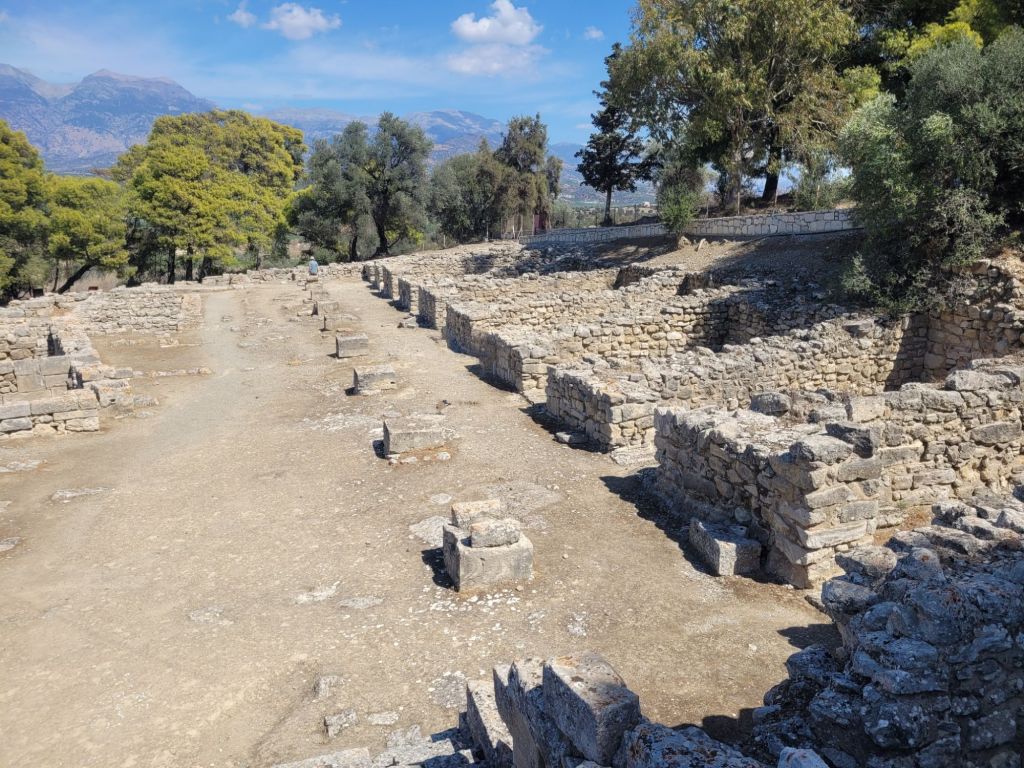 Something that taxes the imagination when exploring the site is the absence of water: it was, after all, a strongly sea-faring city. Tectonic shifts throughout the Bronze Age and later led to a six-to-eight metre uplift of the whole of western Crete. This may seem counter-intuitive when you think about other coastal areas of Greece and Italy where the opposite happened, with rising sea levels covered habitations for example: the emperor Caligula’s sunken palace just north of Naples or the archeological site of Pavlopetri, off the coast Elafonisos in the Peloponesse. Crete is, however, located immediately adjacent to (if not actually on) a tectonic fault line between two plates and it has been earthquake prone throughout its history. All this explains the distance of the ancient site from water. More prosaically, there was also a canal to the harbour which is now silted up.