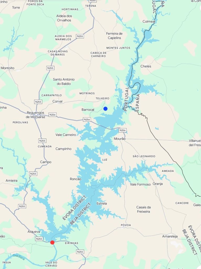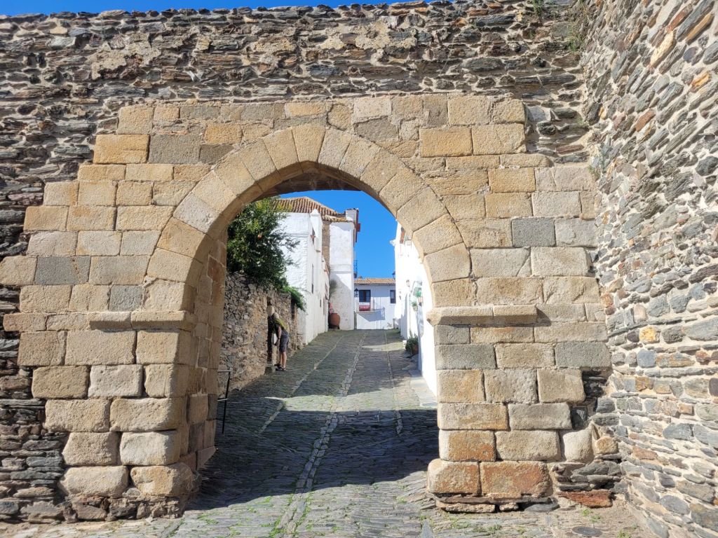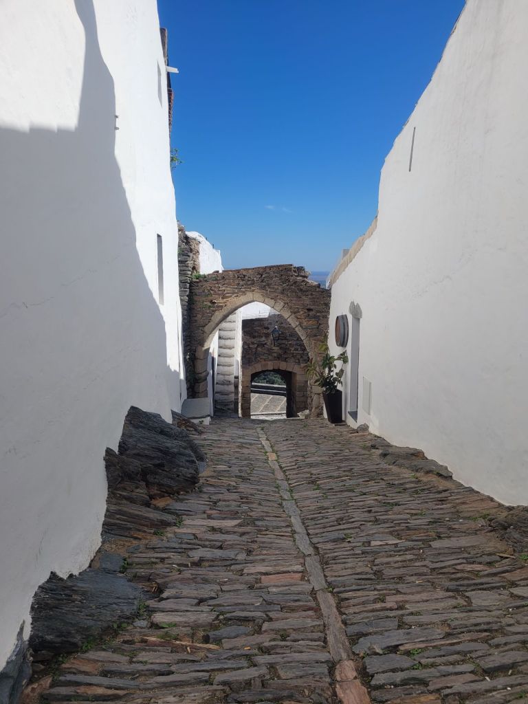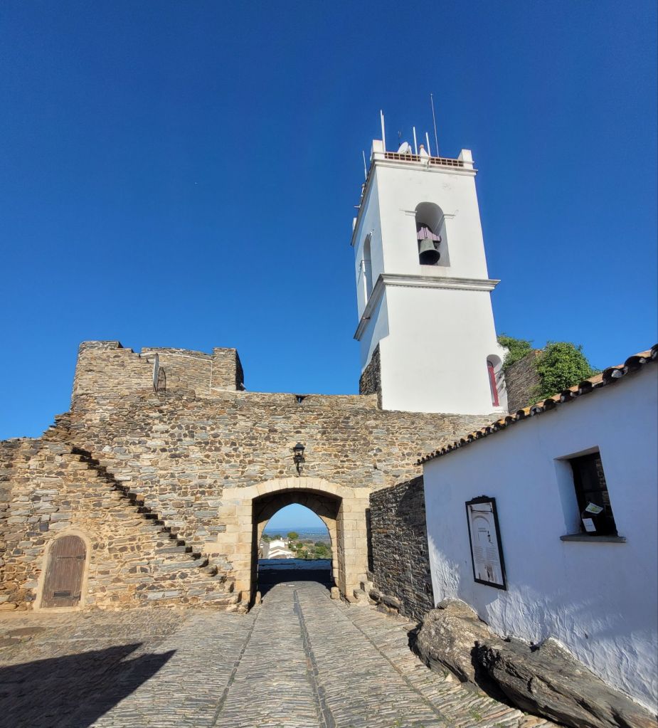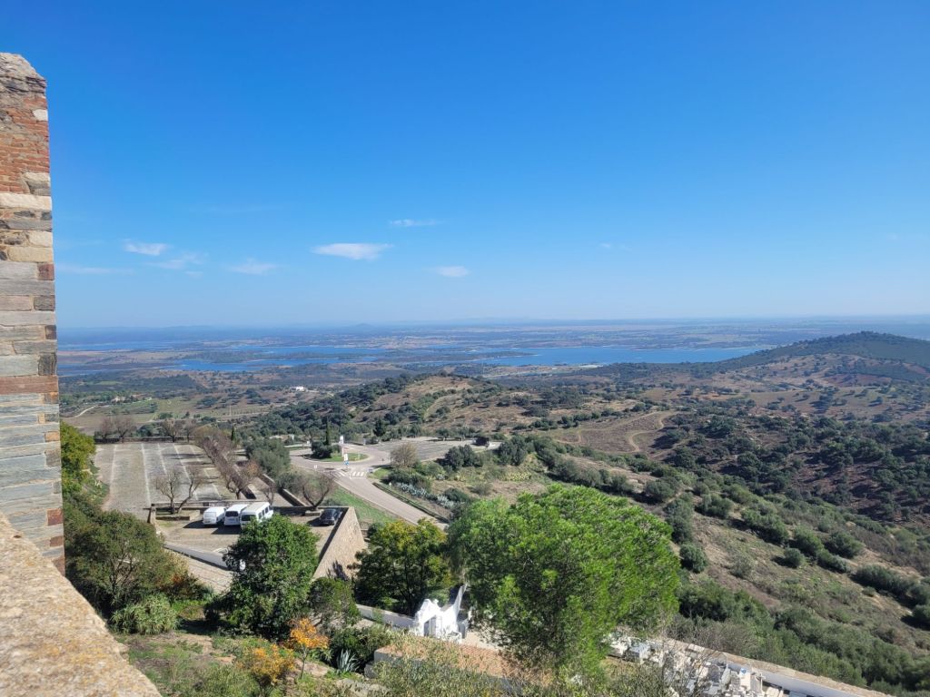 Re-joining the Guadian river just where it was dammed, forming the enormous Alqueva Reservoir (the Alqueva dam was completed in 2002), a vast span of water opened out – like an inland sea. Perched above this, close to the Spanish border, is the castle of Monsaraz.
