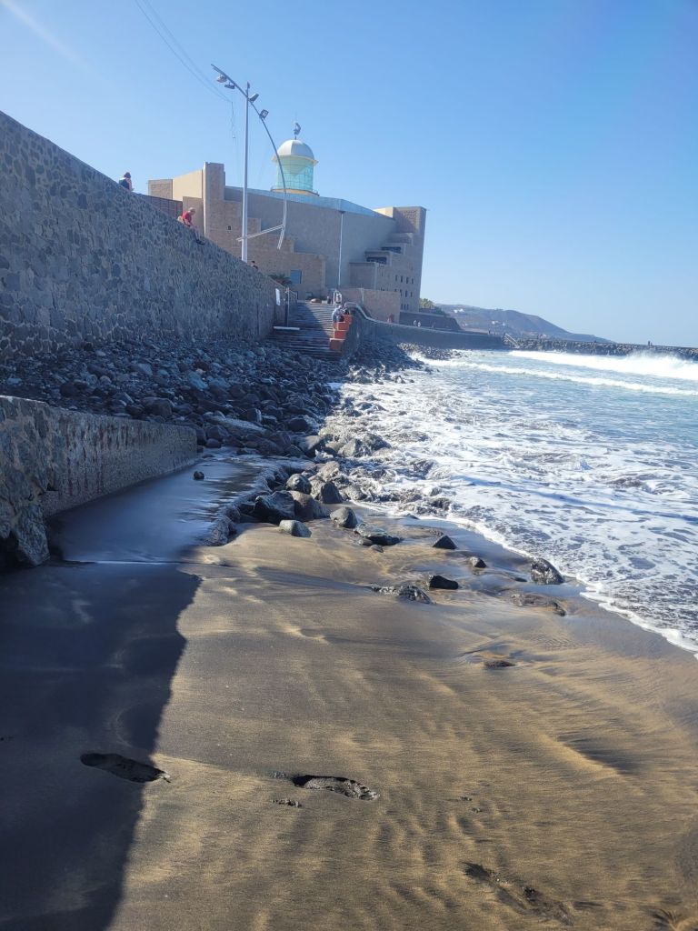Las Palmas has a charming old town, a very touristy city beach district and an awful lot of modern development. Over the years, there has been some ‘re-formation’ with the coastline being extended into the sea in order to provide a coastal motorway to the docks. This extension of land surface started in the late 19th century, when the isthmus of sand connecting La Isleta was built up to provide for a bigger port.