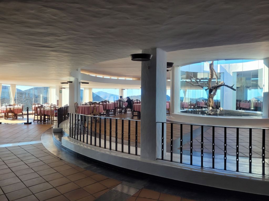 As you descend, the cave underneath opens up into a huge space, with a bar serving both drinks and food, a dance floor (I did say entertainment) and a gallery overlooking the lake.