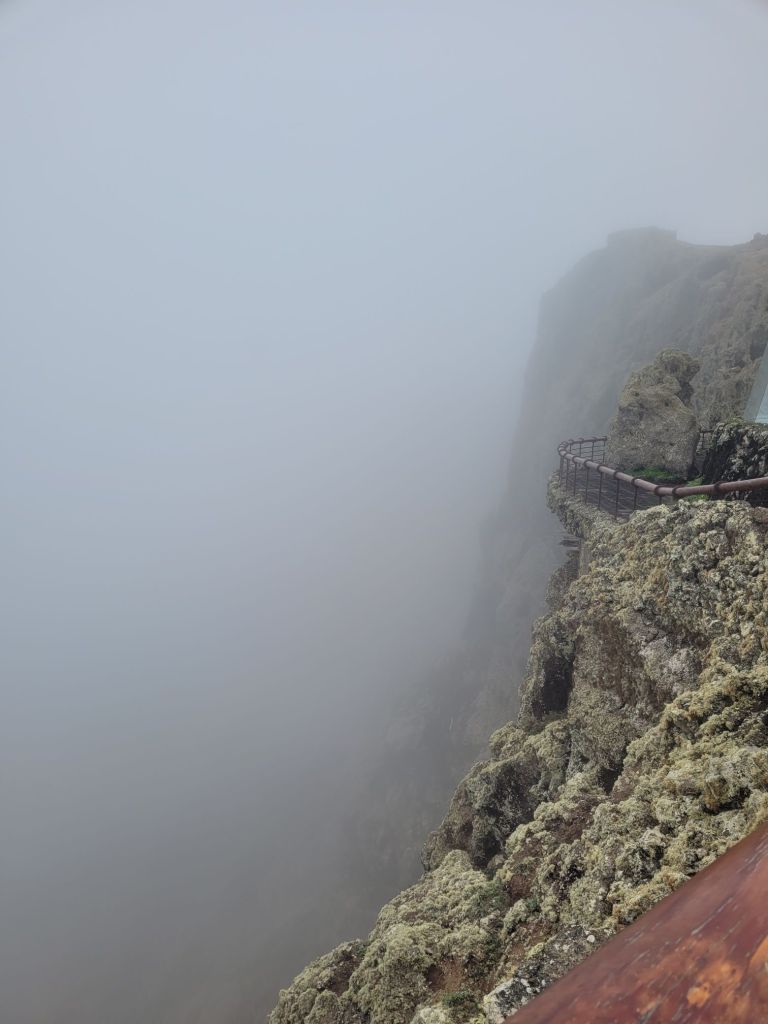 Right at the top, 500 metres up on the third floor, there is a terrace that not only looks out to sea but also allows views south-west, down the coast. Despite the improved weather it was still hazy enough that the volcanoes that parade down the island were indistinct. On a crystal clear day, it must be unbelievable.