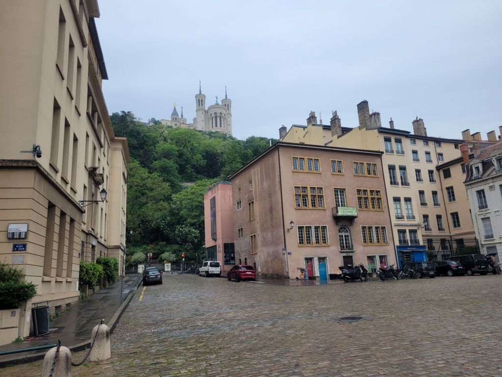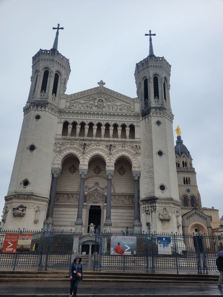 From the top of Fourviere, the Basilica looks over the city – you can see it from several points below – almost lining up with the cathedral.