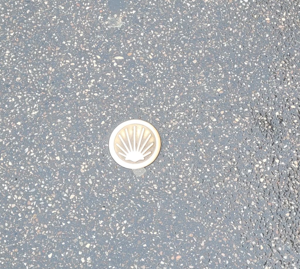 The cathedral is on the Santiago de Compostela route, attested by the brass shells in the pavement.