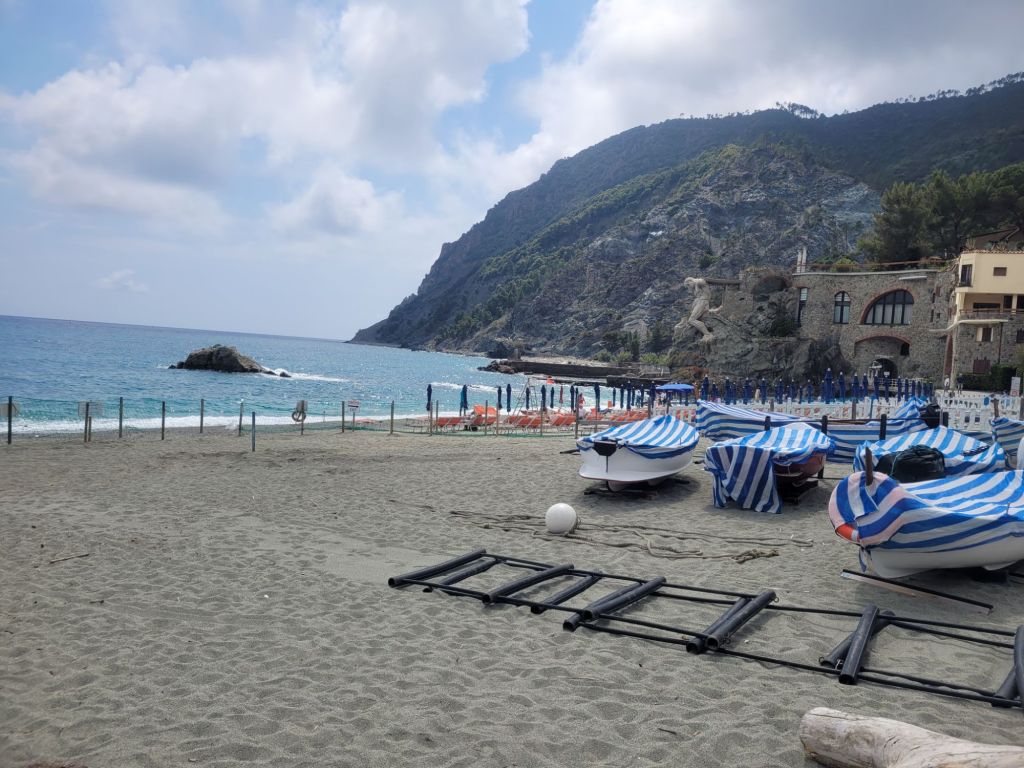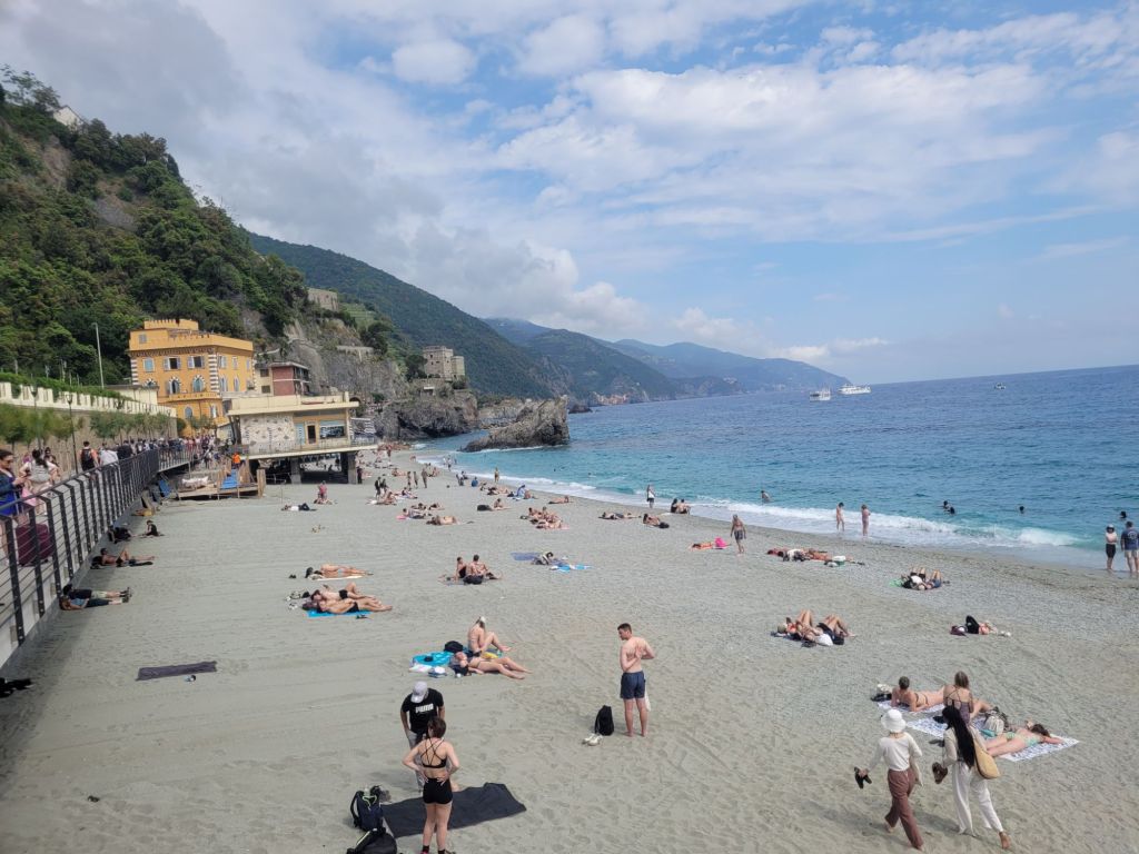 Staggering into Monterosso, we stopped at the first eating establishment we came to, ordered large beers and collapsed. The food was edible and carb heavy, the beers were large (we each had two). We had left Levanto at just past 11 and arrived in Monterosso at nearly three o’clock.