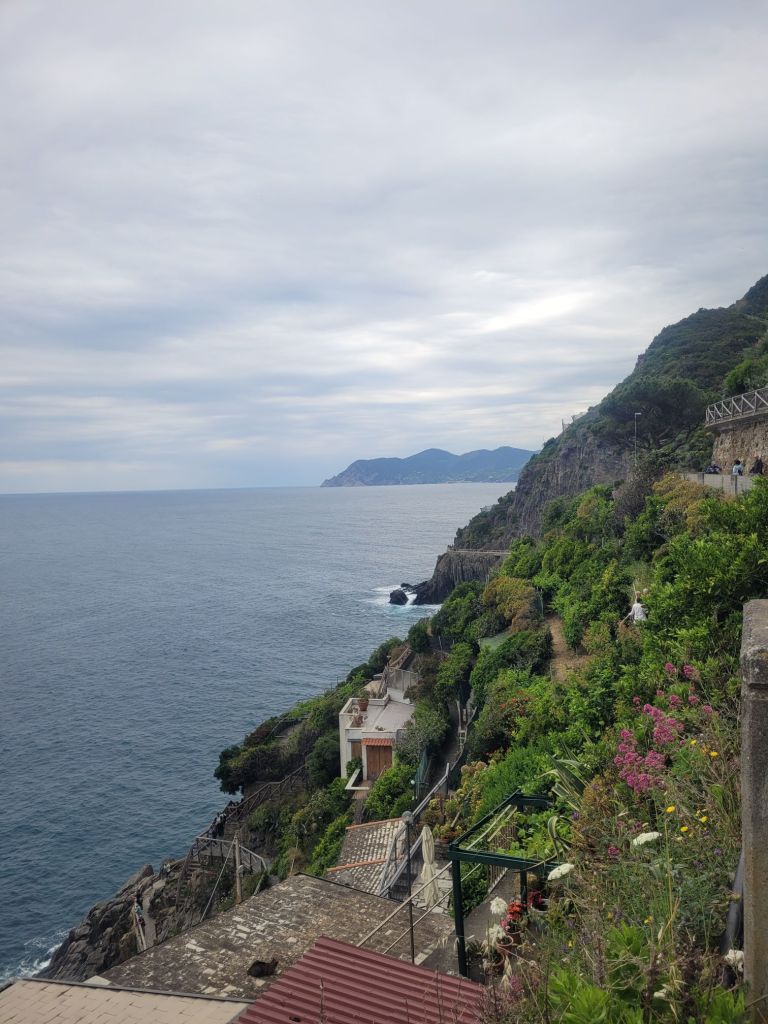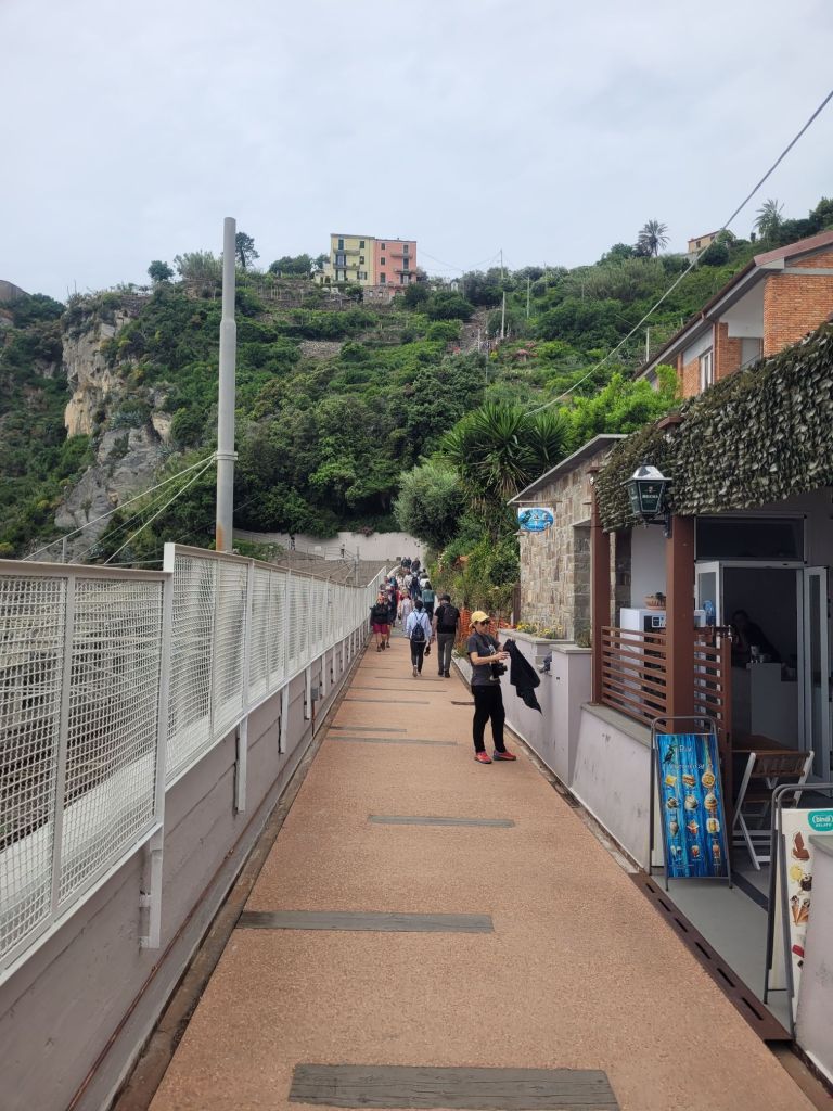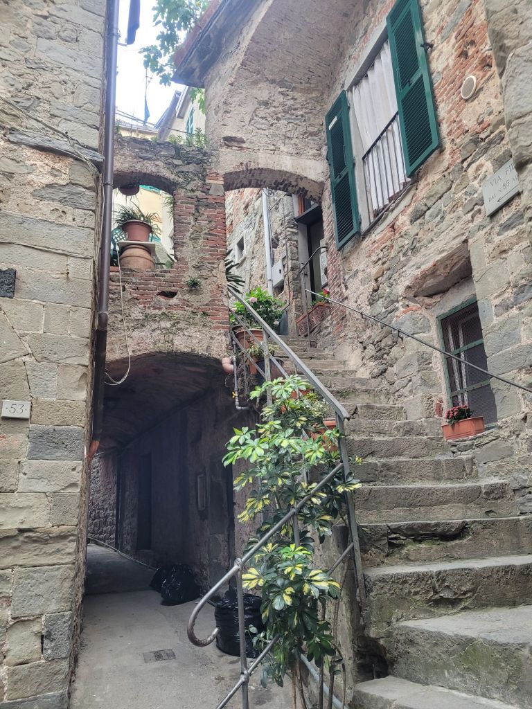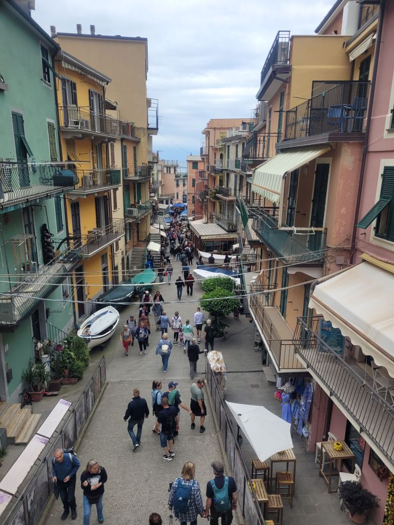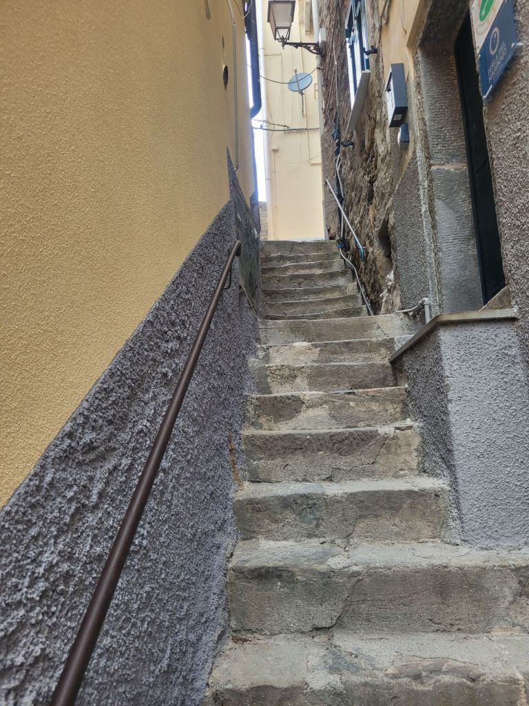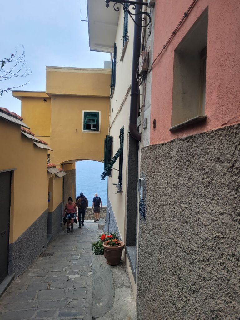 In order to get to Corniglia you either take the shuttle bus (packed and a huge queue) or you walk up the 340-plus stairs. They aren’t big steps but it’s still a long way.